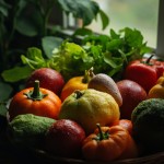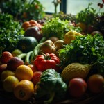 Fresh Collection of Fruits and Vegetables, Dew Drop Details, Indoor Lighting