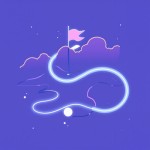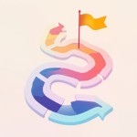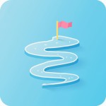 A minimal and modern illustration of a winding path on a map, with a flag placed at the final destination. The path should curve naturally, representing a journey or mission, with subtle markers or steps along the way. The overall design should be clean, symbolic, and suitable as a main visual for a mobile app. Use soft neon colors and rounded shapes to give it a friendly and motivating feel.