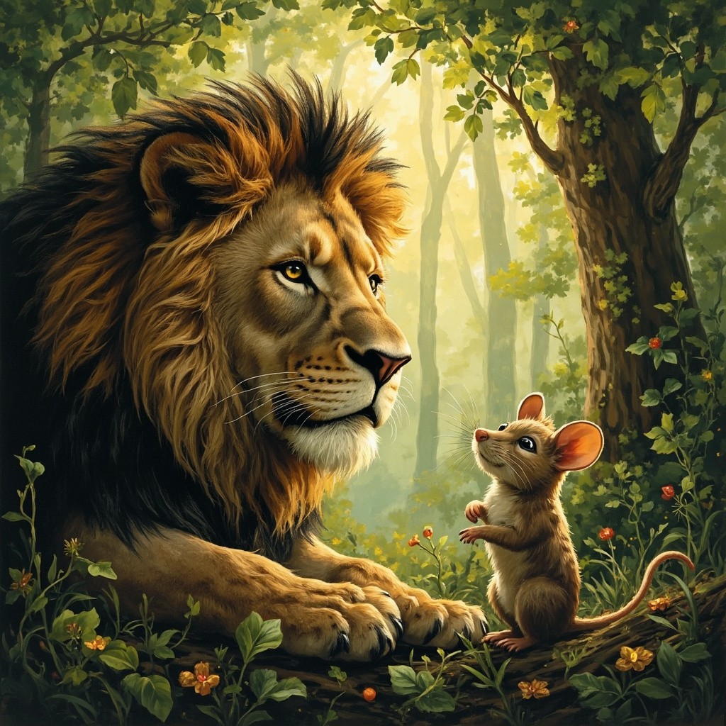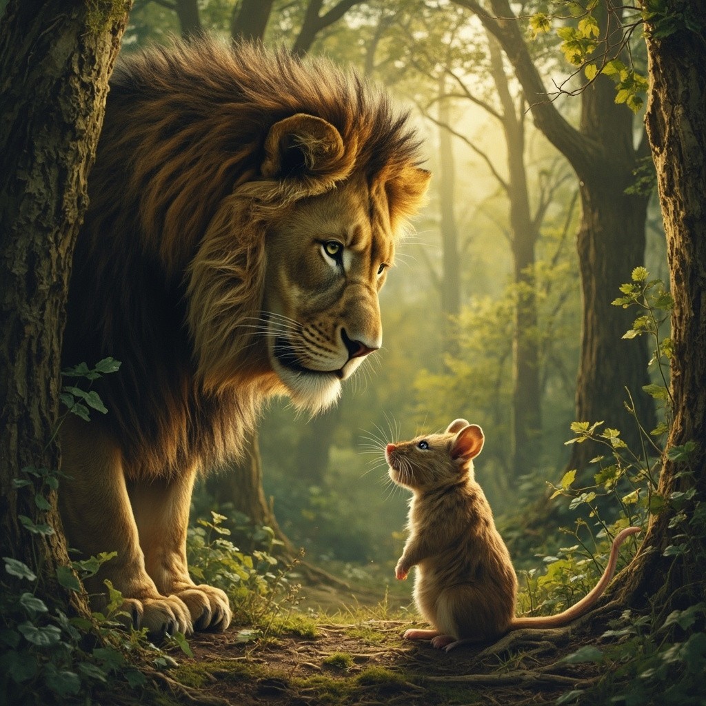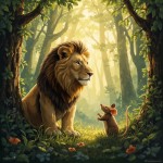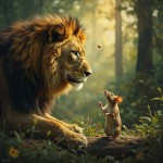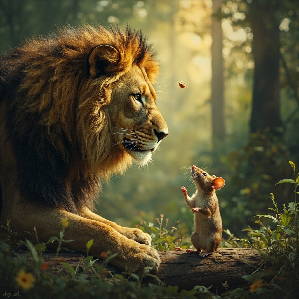 Friendship Between Lion and Mouse in Jungle