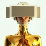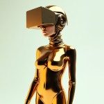 Futuristic Female Android in Chrome Bodysuit with VR Helmet