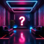 Futuristic Neon Decor with High-Tech Elements and Glowing Question Mark Center