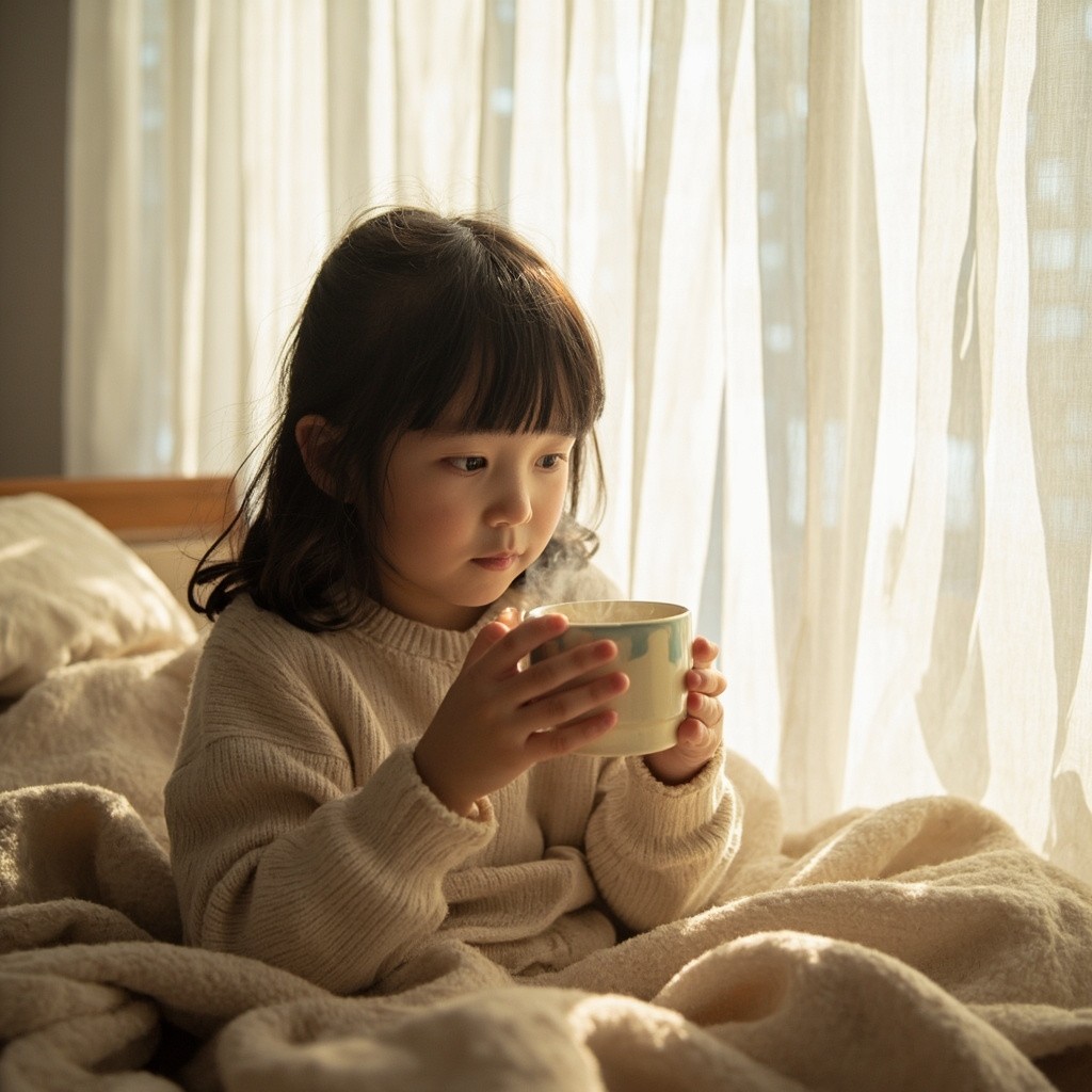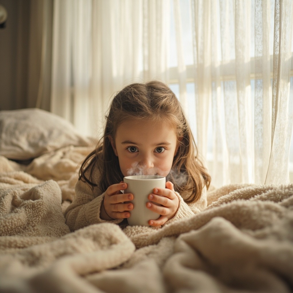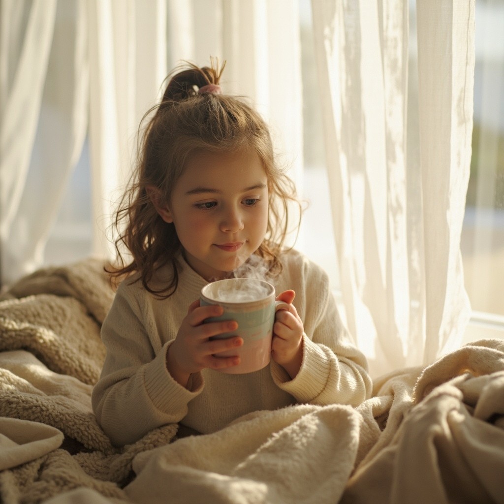Girl's Hands Holding Pastel Mug in Soft Morning Light