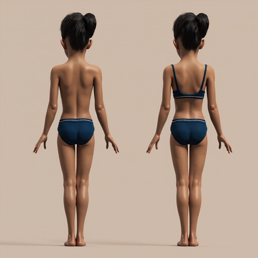 Full Body Photo of Girl in Dark Blue Bikini Front and Back