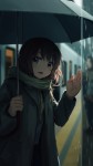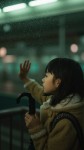 Teary-Eyed Girl Waving Goodbye on Rainy Train Platform