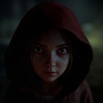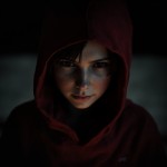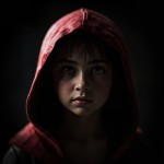 Girl with Red Hood in Dark Ambient Lighting