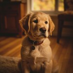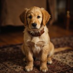 Golden Retriever Puppy with Leather Collar in Cozy Interior