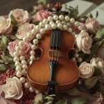 Beautiful Violin with Pearls and Flowers Instagram Image