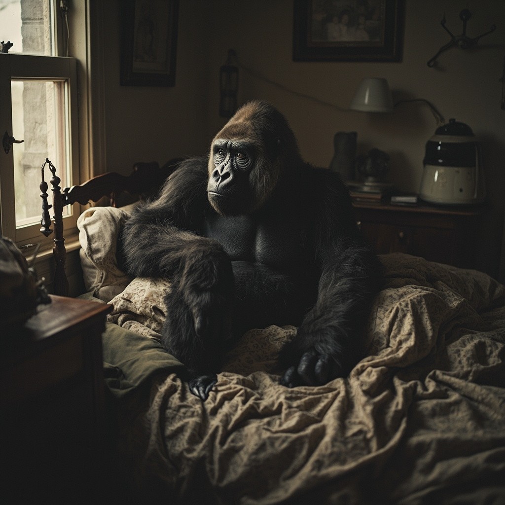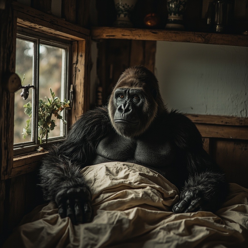 Gorilla Going to Bed in House