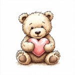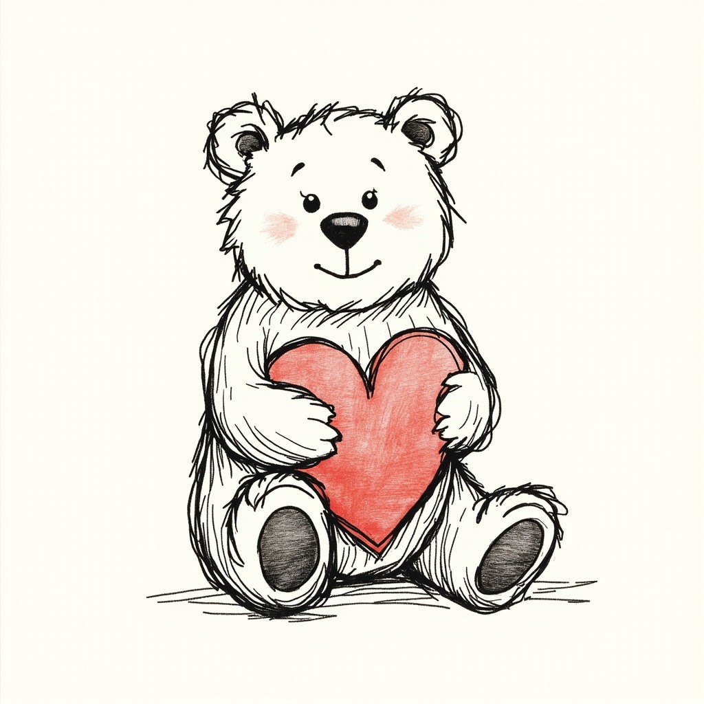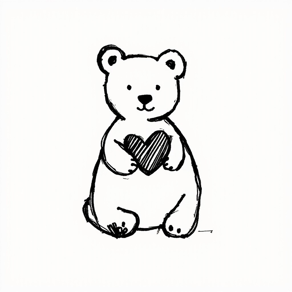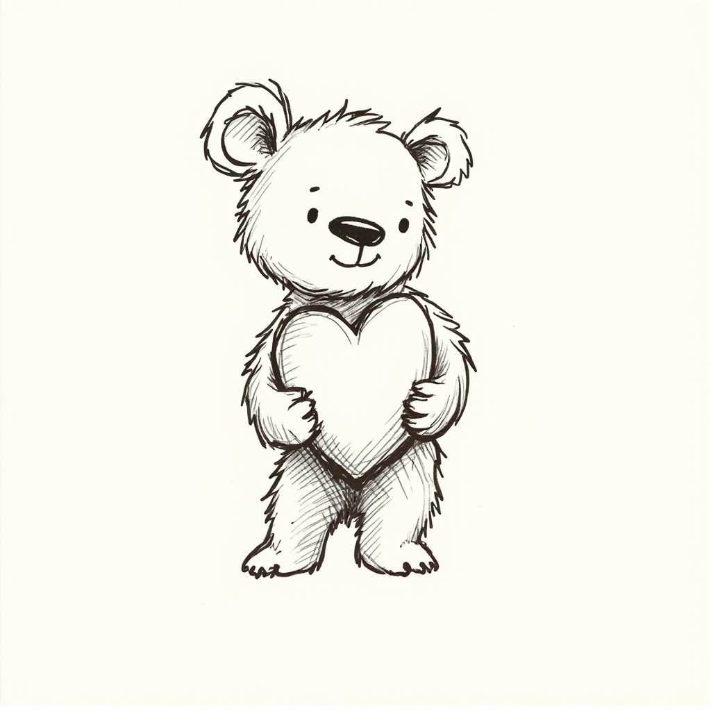 Hand-Drawn Sketch Logo of Bear Holding Heart