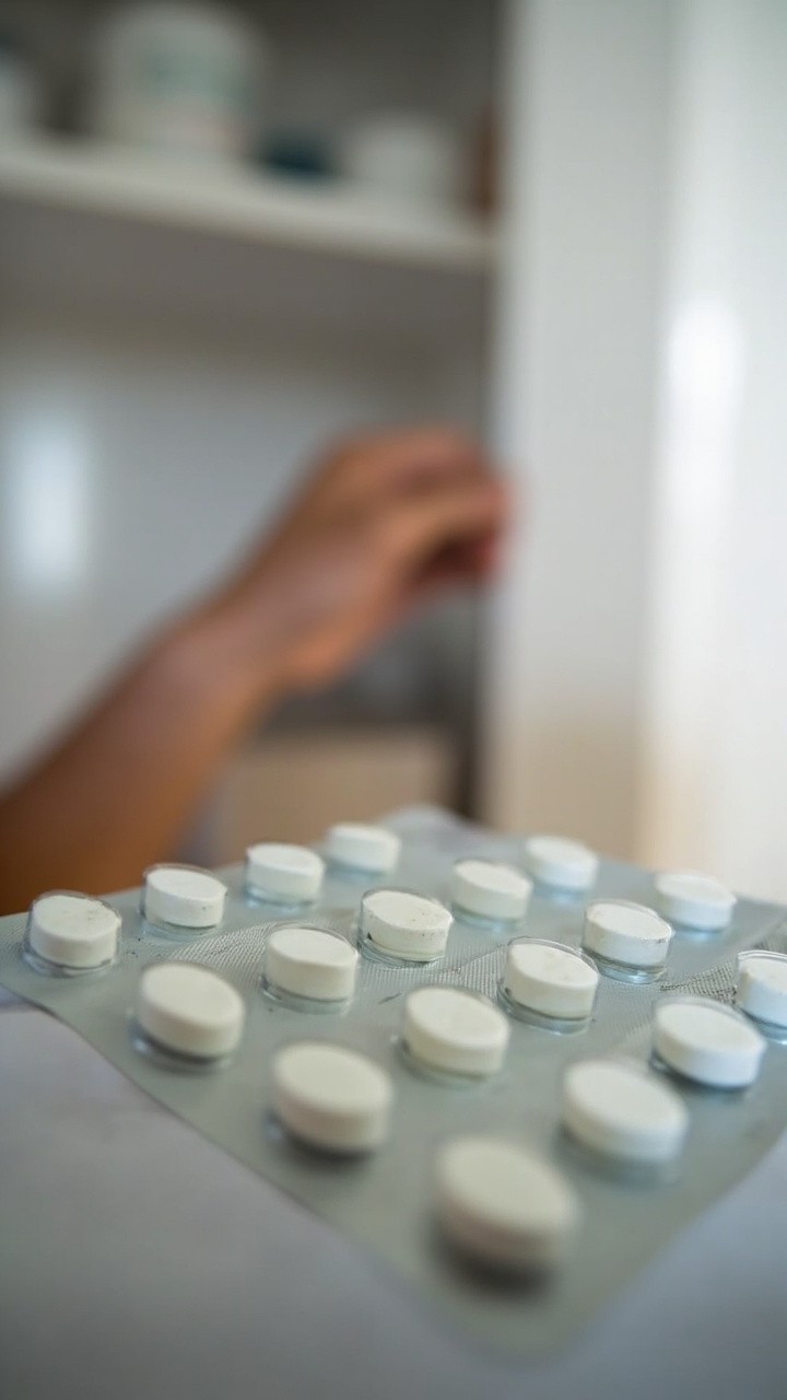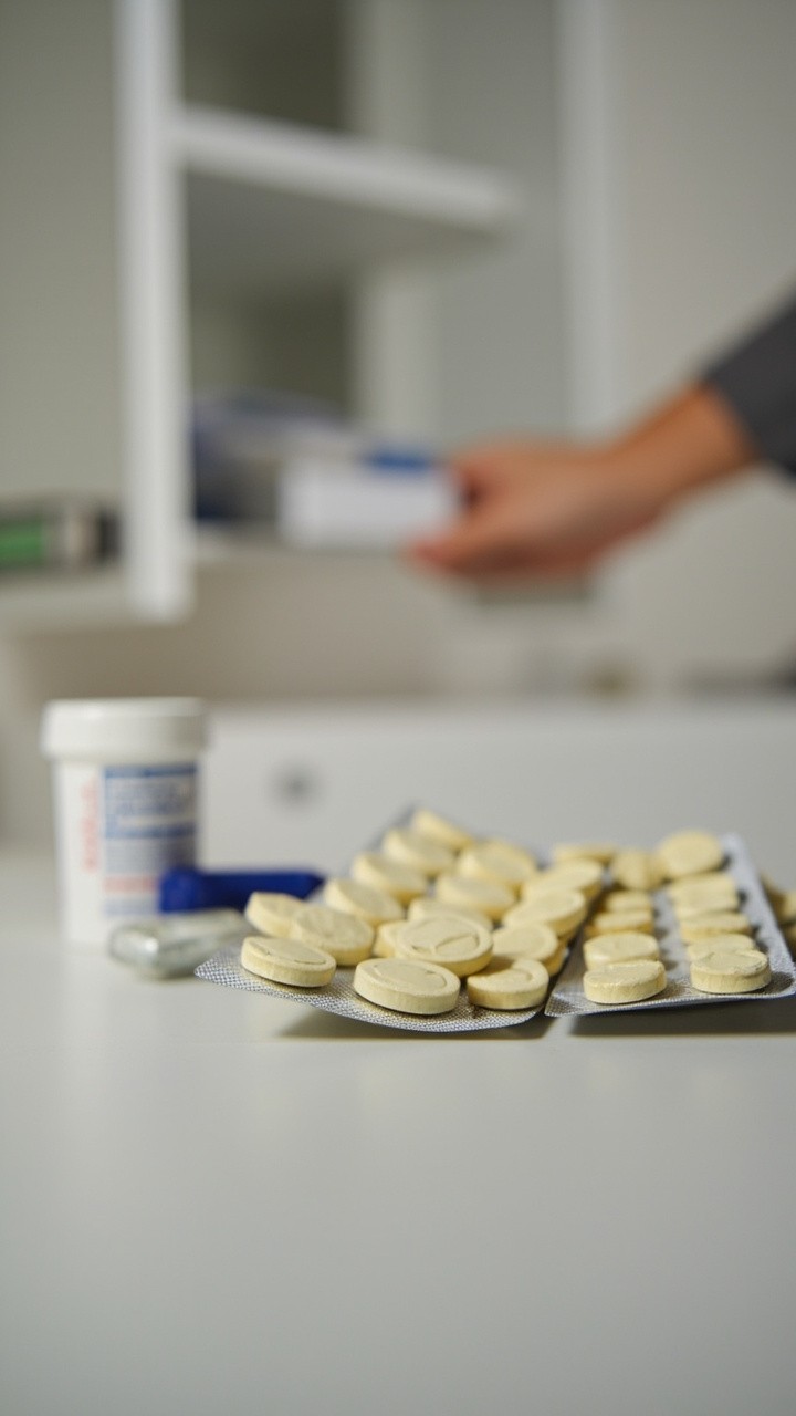 Hand Reaching for Ibuprofen Tablets in Modern Medicine Cabinet