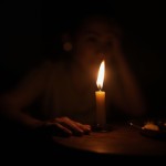 Macro Shot of Single Candle Flame Lighting Hand and Wooden Table