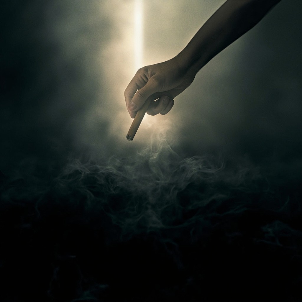 Dramatic Hand Emerging from Dense Smoke Under Spot Light
