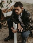 Handsome Man in Leather Jacket and Black Shoes Looking at His Beloved