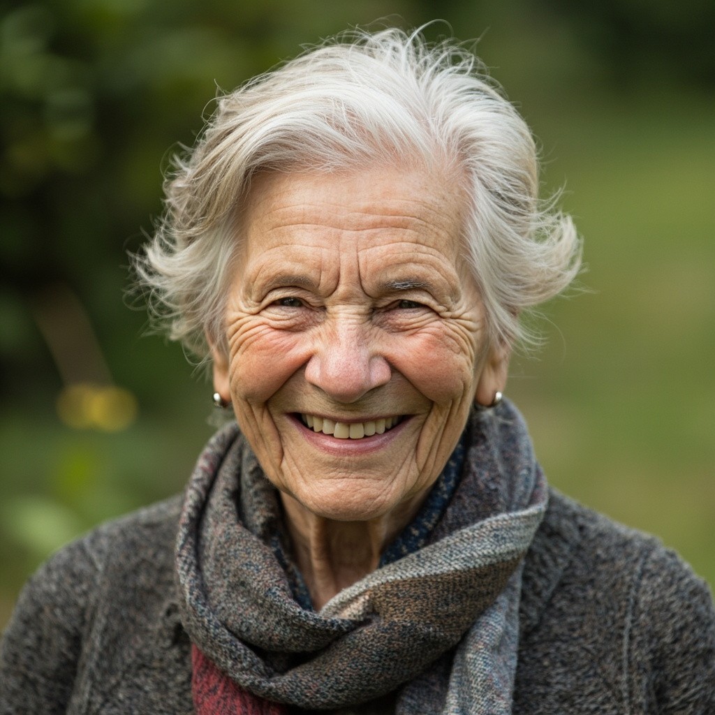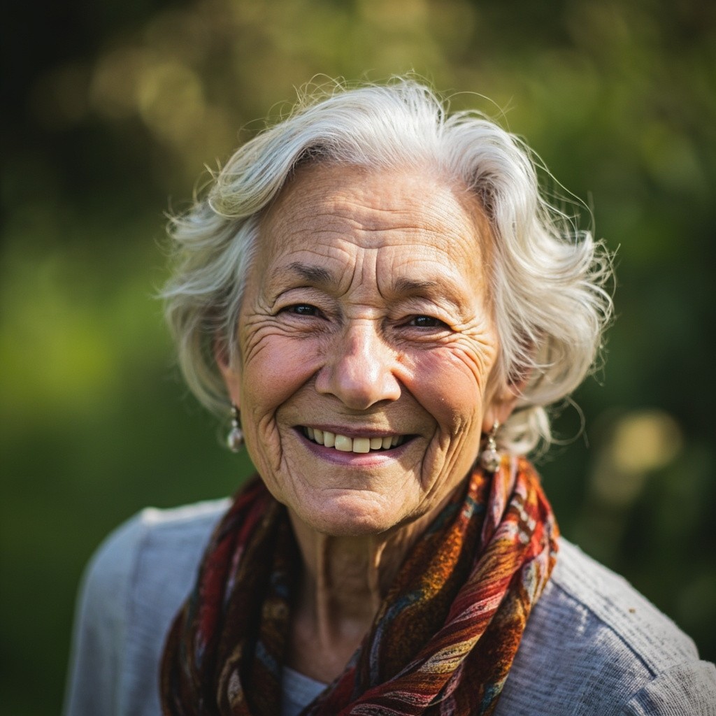 Optimistic Smiling Senior Woman against Natural Backdrop
