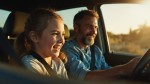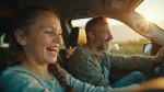 Happy Father Driving with Daughter, Travel Concept