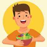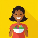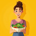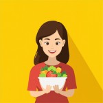 Happy Person Holding Bowl of Healthy Food on Yellow Background