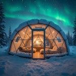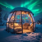 Modern Heated Glass Igloo Interior with Northern Lights View