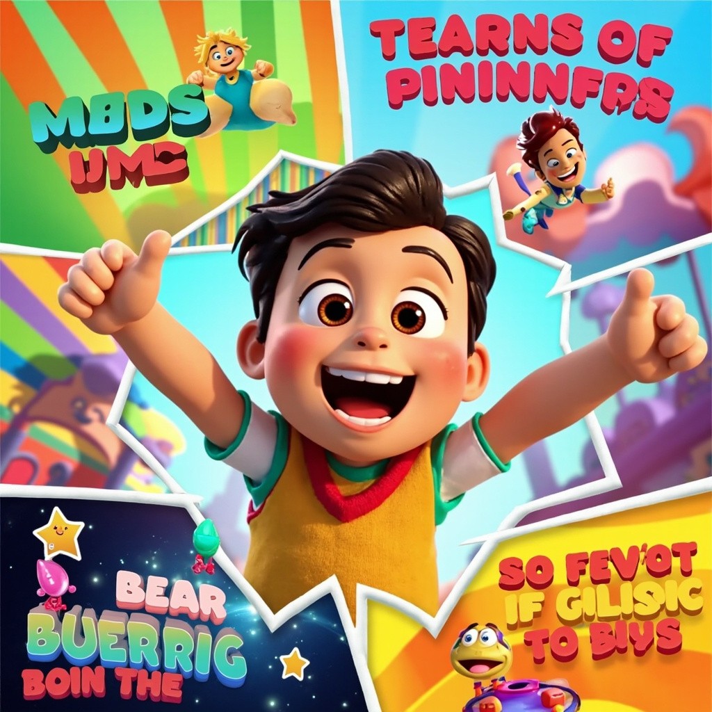 Main: High-energy 3D animated kids video. Cheerful cartoon child leading positive affirmations, dancing, jumping, clapping, pointing at camera. Bright colors, smooth animation, expressive face. Fast scene changes: playground, rainbow, classroom, candy land, outer space. Character speaks and sings with excitement, encouraging kids to repeat. Dynamic camera, quick zooms, slight shake, playful transitions. Bold colorful subtitles with emojis. Fun, engaging, motivational, viral YouTube kids style. Negative: slow, boring, dark, realistic, dull colors, low energy, static camera, plain background, text errors, blurry, distorted, extra limbs, low quality.