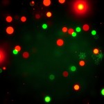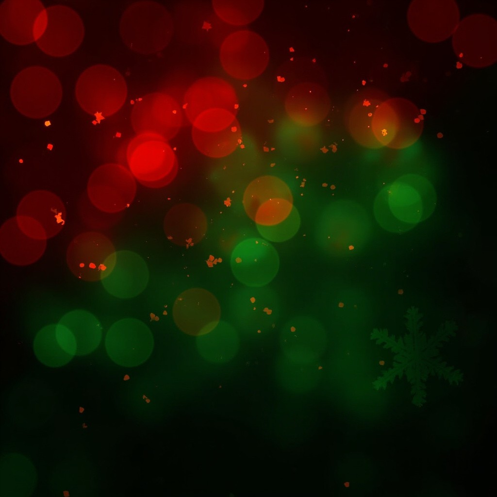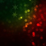 Festive Christmas Background with Lights, Snowflakes in Red and Green