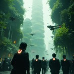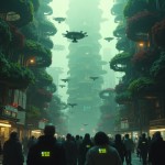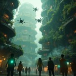 Biotech-Controlled City with Vertical Gardens and Surveillance Drones