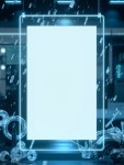 Sci-Fi Tech Poster Mockup on Magnetic Board with Floating 3D Effect and Blue LED Ambient Light