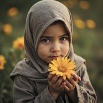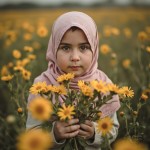 Hijabi Girl Holding Flowers