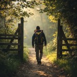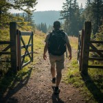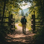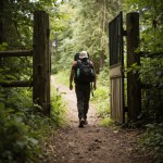 Hiker Walking Through Open Gate Onto Path