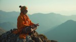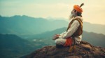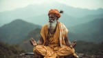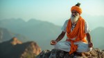 Hindu Rishi Man Meditating in Traditional Attire on Sacred Mountain