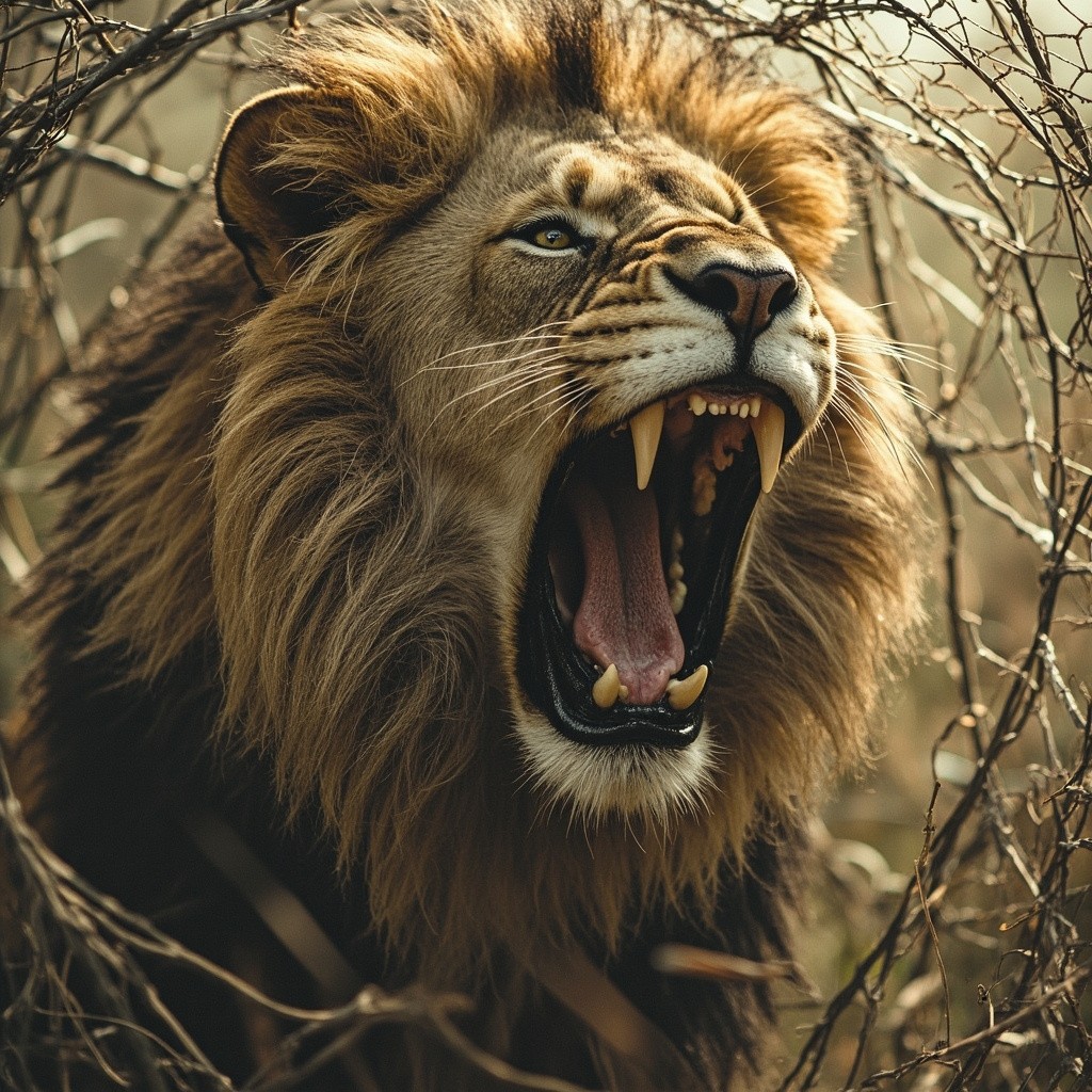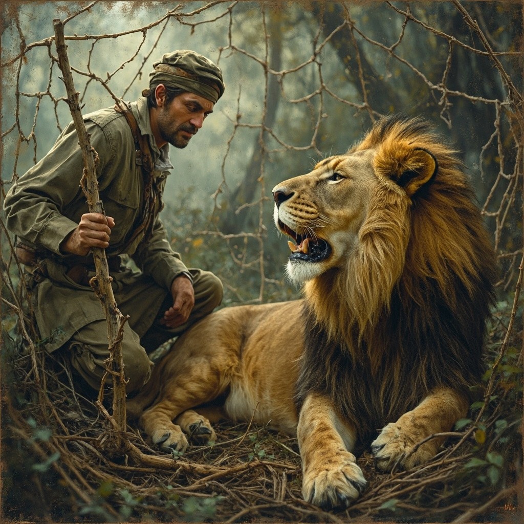 Hunter Trapped Lion in Net