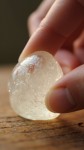 Crystal Clear Jellyfish-Shaped Candy Being Pressed on Wooden Tabletop