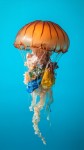 Jellyfish Trapped in Plastic Waste on Solid Color Background