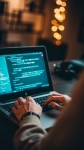 Laptop Display Showing Skripsi Journey with Hands Typing