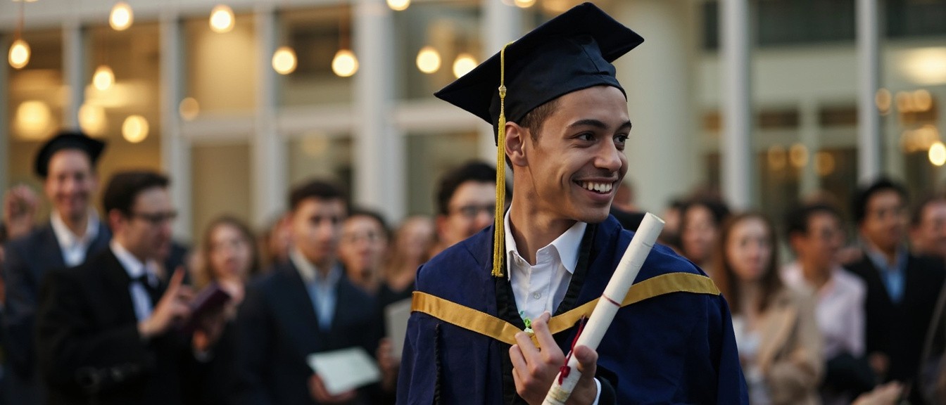 Law Graduate Holding Diploma with Expression of Conquest and Happiness