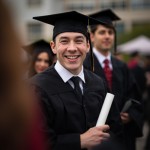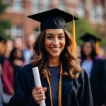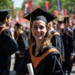 Law Graduate Holding Diploma with Joyful Expression, Festive University Setting