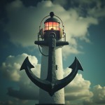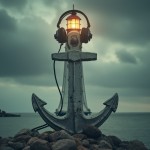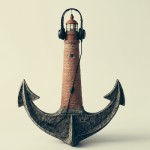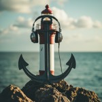 Lighthouse Merged with Anchor Wearing Headphones