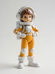 Astronaut Girl Figurine in Yellow-Orange Jumpsuit with White Armor