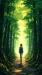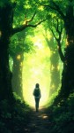 Anime Style Tranquil Forest Path with Lone Walker
