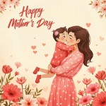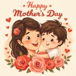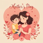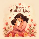 Mother's Day Celebration, Loving Mom and Child with Flowers and Hearts