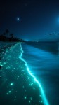 Serene Night Beach with Starry Sky and Bioluminescent Shoreline