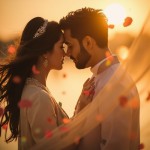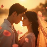 Generate a romantic and dreamy cinematic video inspired by the style of “Malang Sajna.” Begin with a soft zoom-in on the subject from the image, with warm golden lighting and a bokeh background. Transition into slow-motion scenes with dramatic eye contact, flowing hair, pastel-colored outfits, and rose petals drifting in the air. Use sunset or twilight backdrops, reflections in water, and gentle lens flares. Include subtle wind effects and slow panning camera movements to enhance the emotional depth. The atmosphere should feel magical, elegant, and full of longing, capturing the essence of romantic connection and aesthetic beauty.