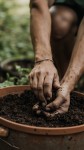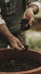 Man Adding Soil to Plant Pot