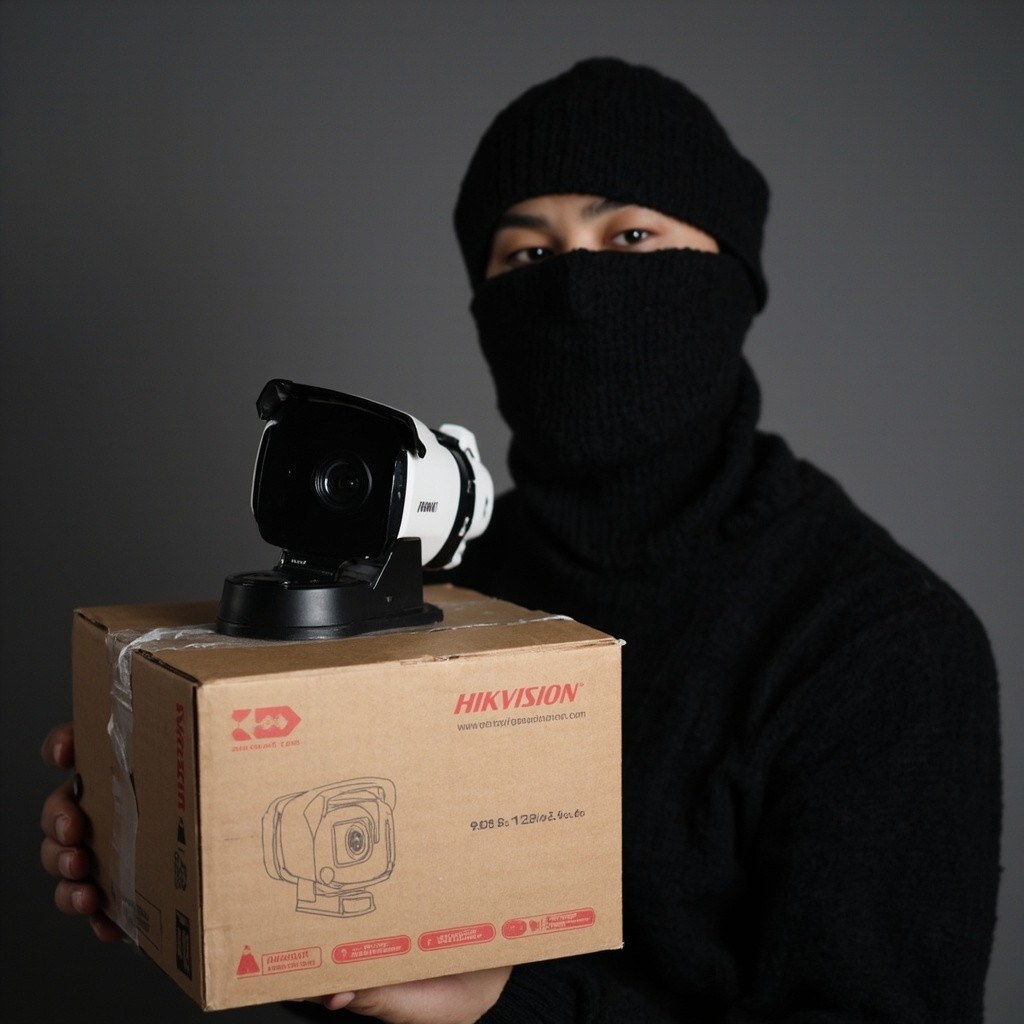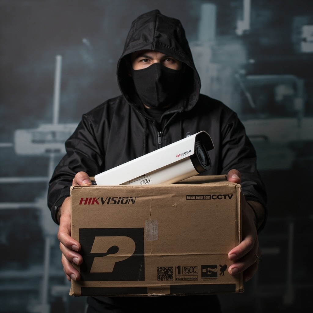 Black Male Holding New Hikvision CCTV Camera at Primetech Security Equipment Ltd