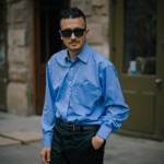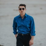 Man in Blue Shirt and Black Pants Wearing Sunglasses