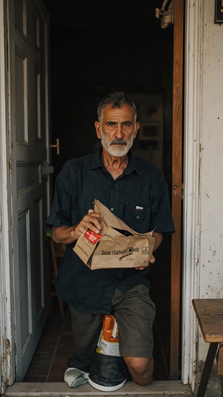 A Man Leaving Food at Poor Family's Door