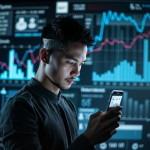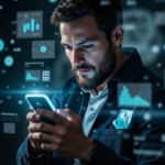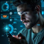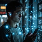 Woman in 20s Using Wearable Health Patch with AR Stats Mobile App