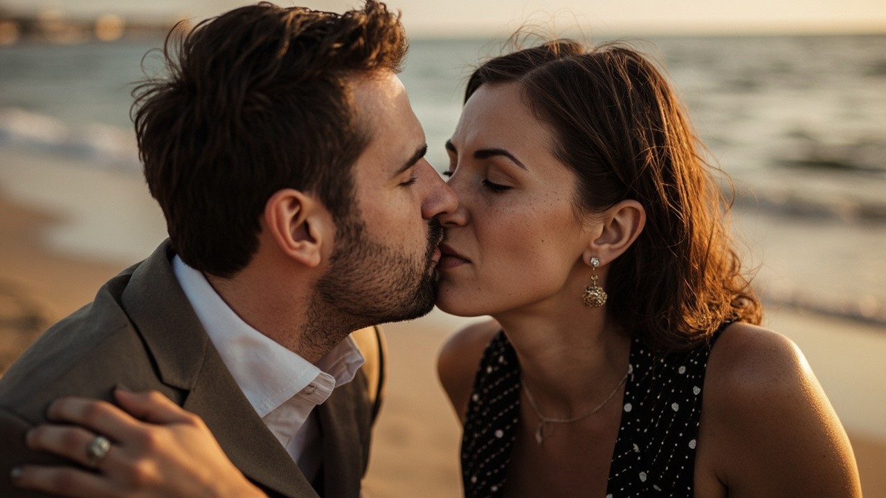 Man Kissing Beautiful Girl