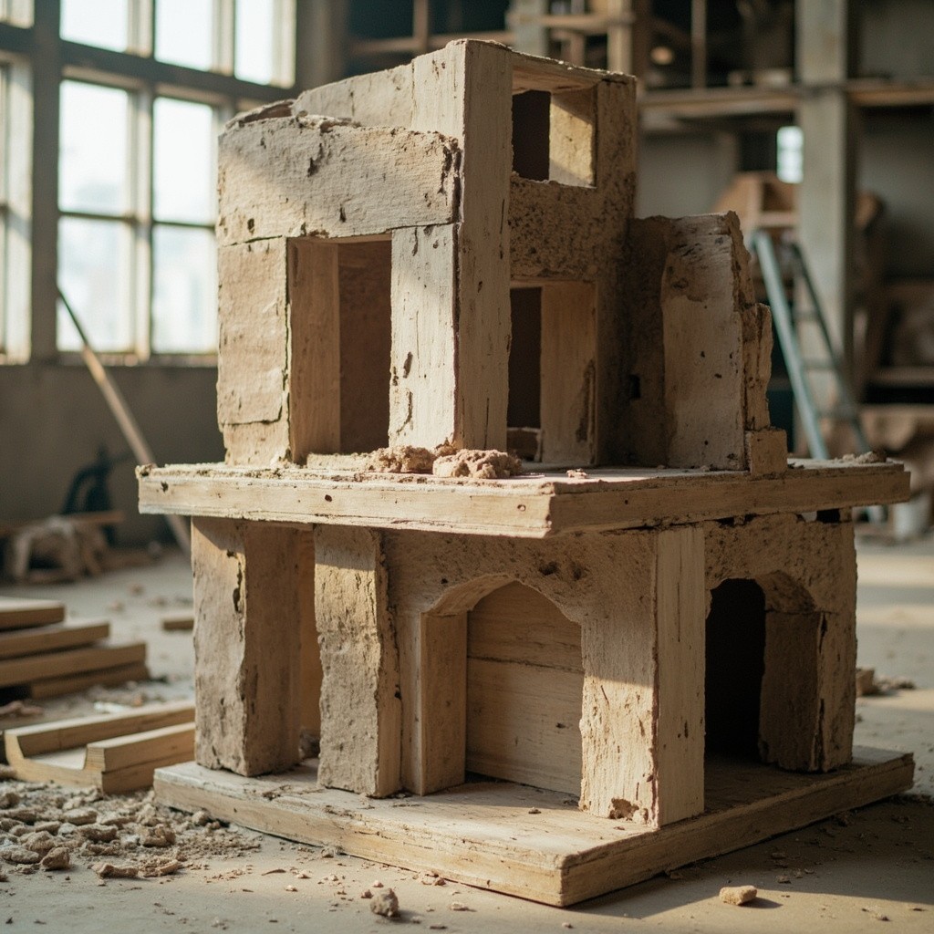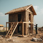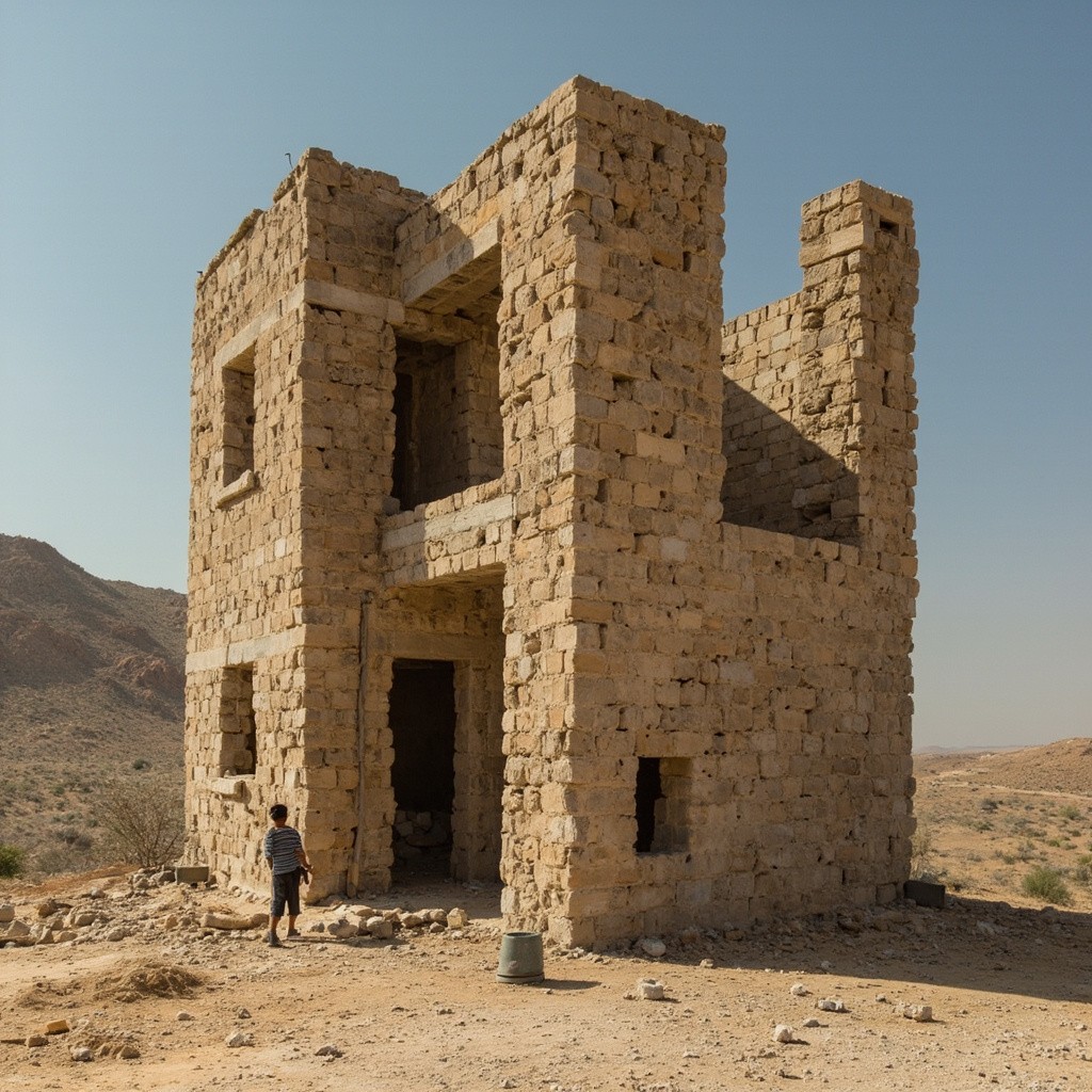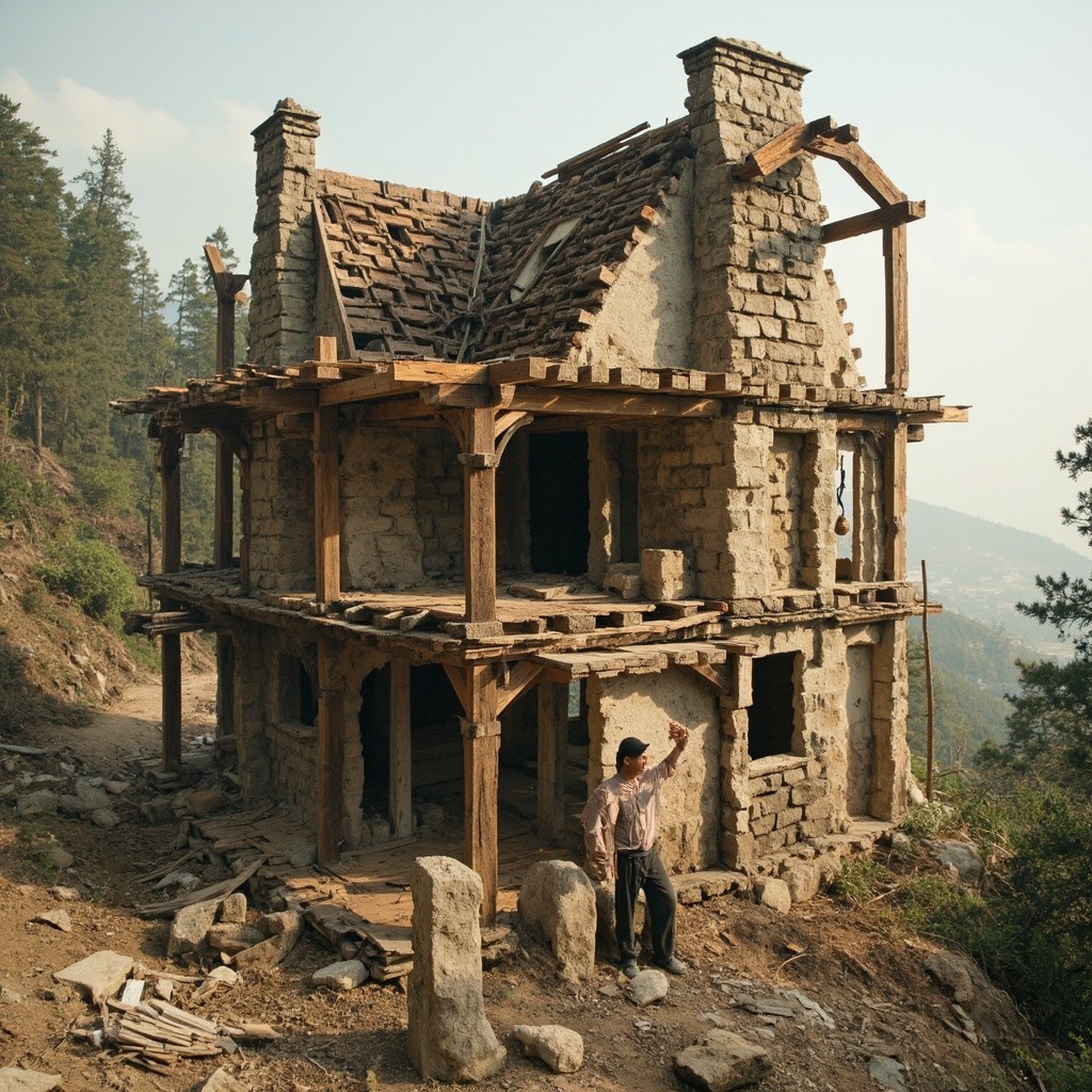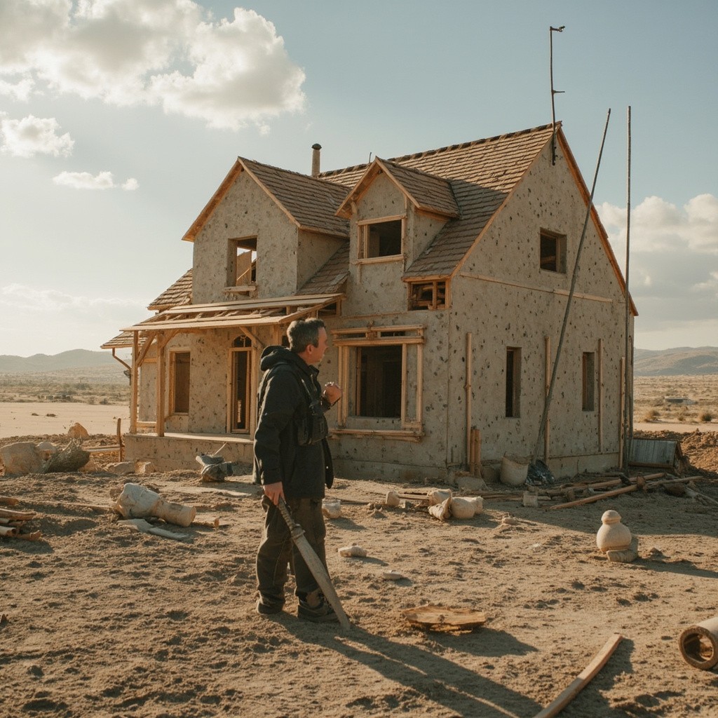 Man Building House and Creating Sculptures