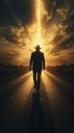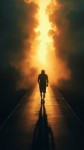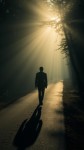 Man Walking on Road from Darkness Towards Light