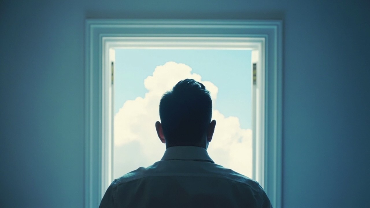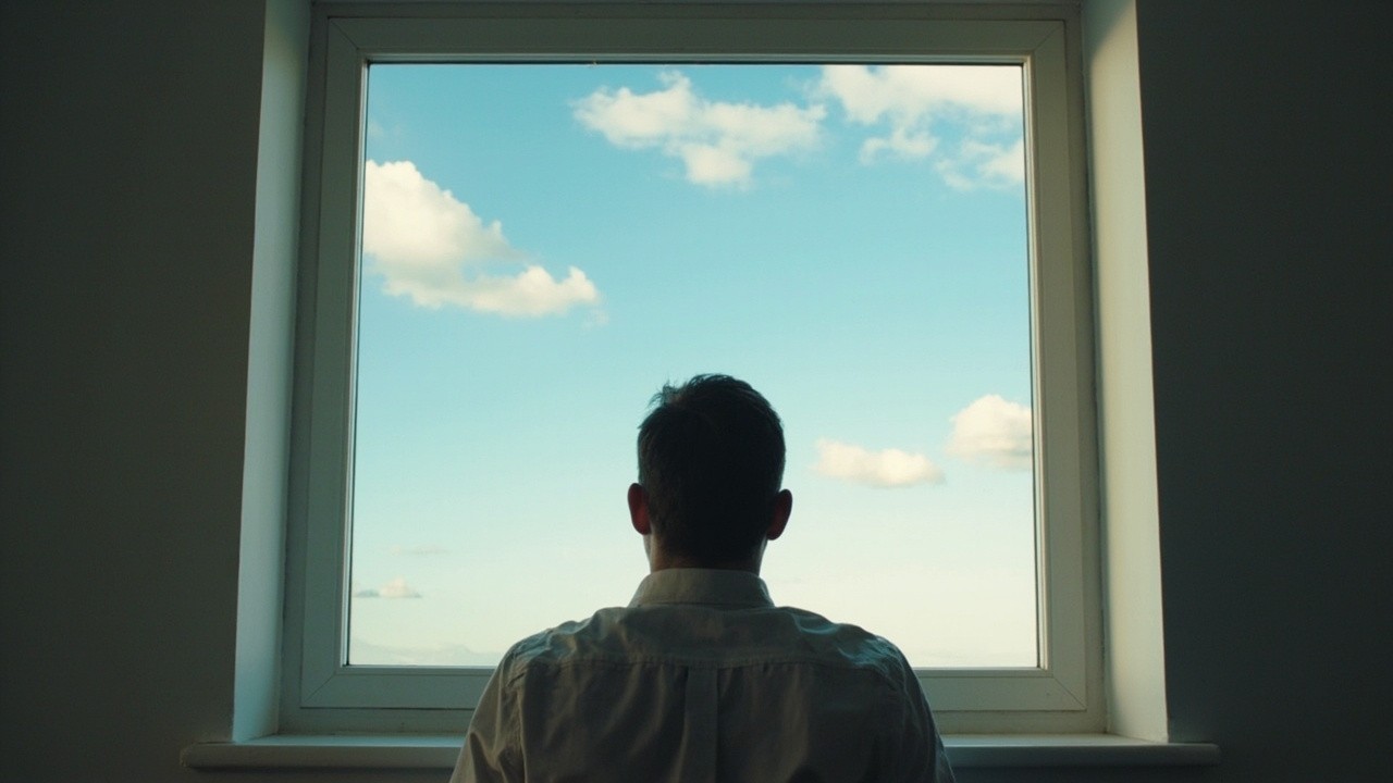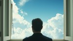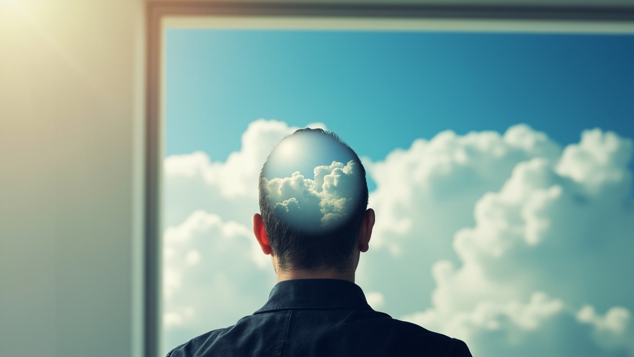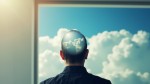 Man with Open Window in Head Showing Clear Sky