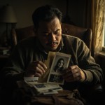 Video Description in English (Duration: 2 minutes): A man is sitting alone in a cozy, softly-lit room. The camera focuses on his hands as he flips through a stack of old letters and black-and-white photos, showing a hint of nostalgia in his eyes. He carefully gathers the letters and pictures, placing them into a worn-out leather bag, as if he’s preparing to leave for somewhere far away. Suddenly, his eyes stop on a single photograph—a picture of a woman he once loved. The camera zooms in to capture his lingering gaze on the photograph, his eyes welling up with tears. He sits there motionless, lost in his memories, as the soft light plays across his face. Gentle piano music fills the background, adding to the bittersweet feeling. As he holds the photograph close, the video transitions to a series of flashbacks—moments of love, laughter, and tenderness with the woman. These memories are woven together with quick cuts, like fleeting glimpses of a past that will never return. The video ends with him closing his eyes, holding the photo tightly to his chest, as he lets out a deep sigh. The final shot fades out on the photograph, showing her smiling face one last time.
